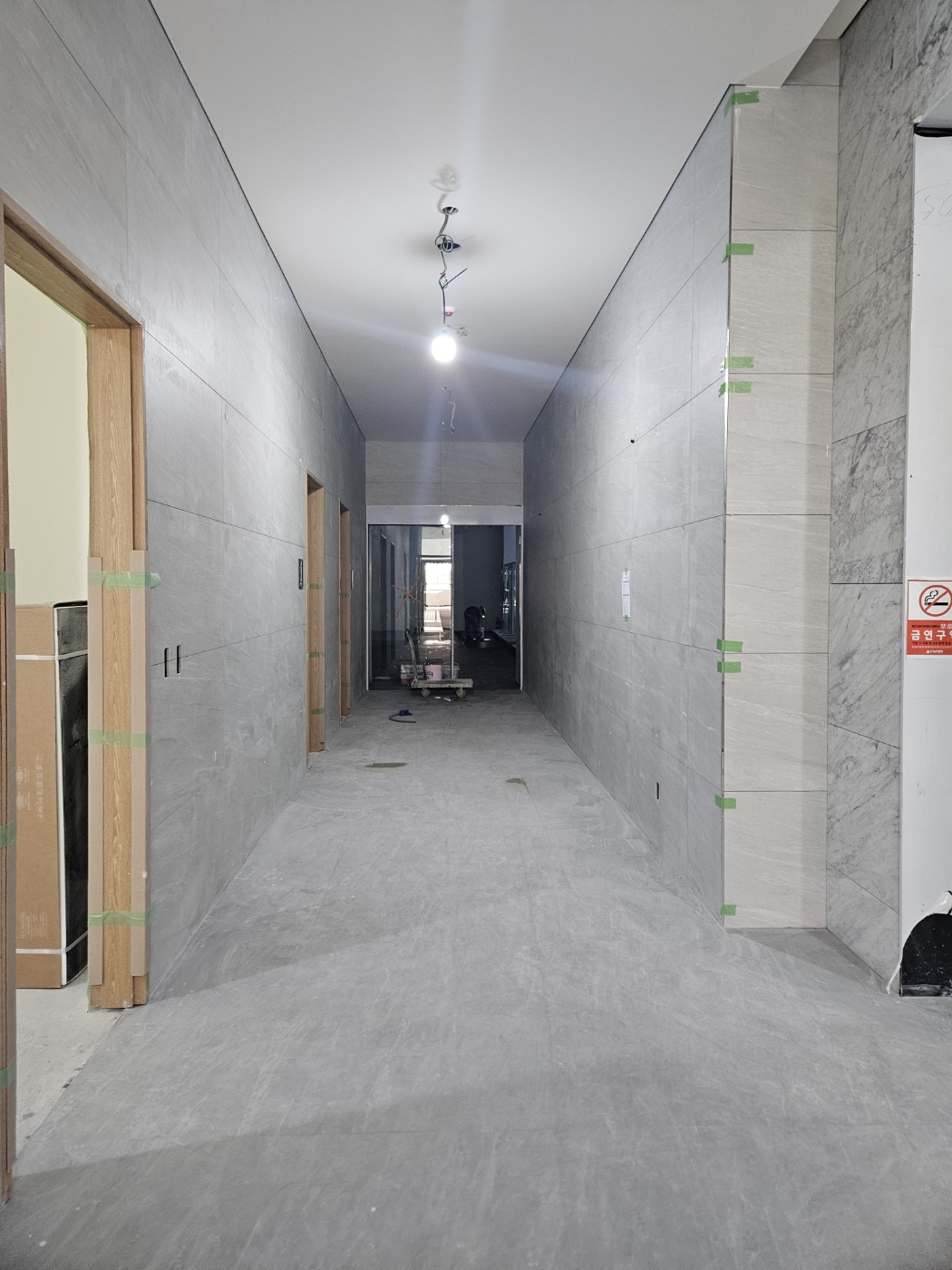 현장에 도착했을 때, 인테리어 마감 공사가 한창 진행 중이었습니다. 바닥 타일과 천장이 아직 마감되지 않은 곳도 있었고, 일부만 진행된 곳도 있었습니다. 큐비클 전문가의 역량은 바로 이런 ‘미완성 현장’에서 발휘됩니다.